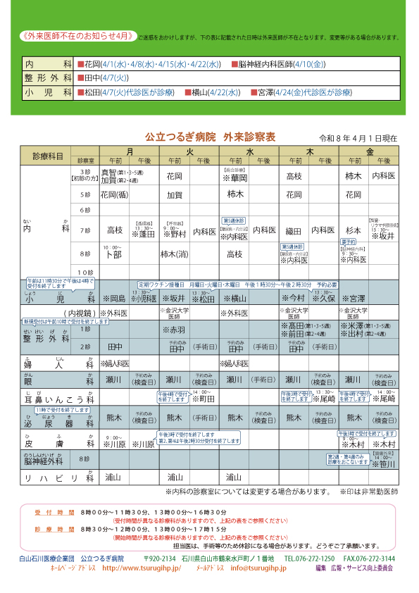 4月の「外来診察表」については、下記のPDFをご覧ください。