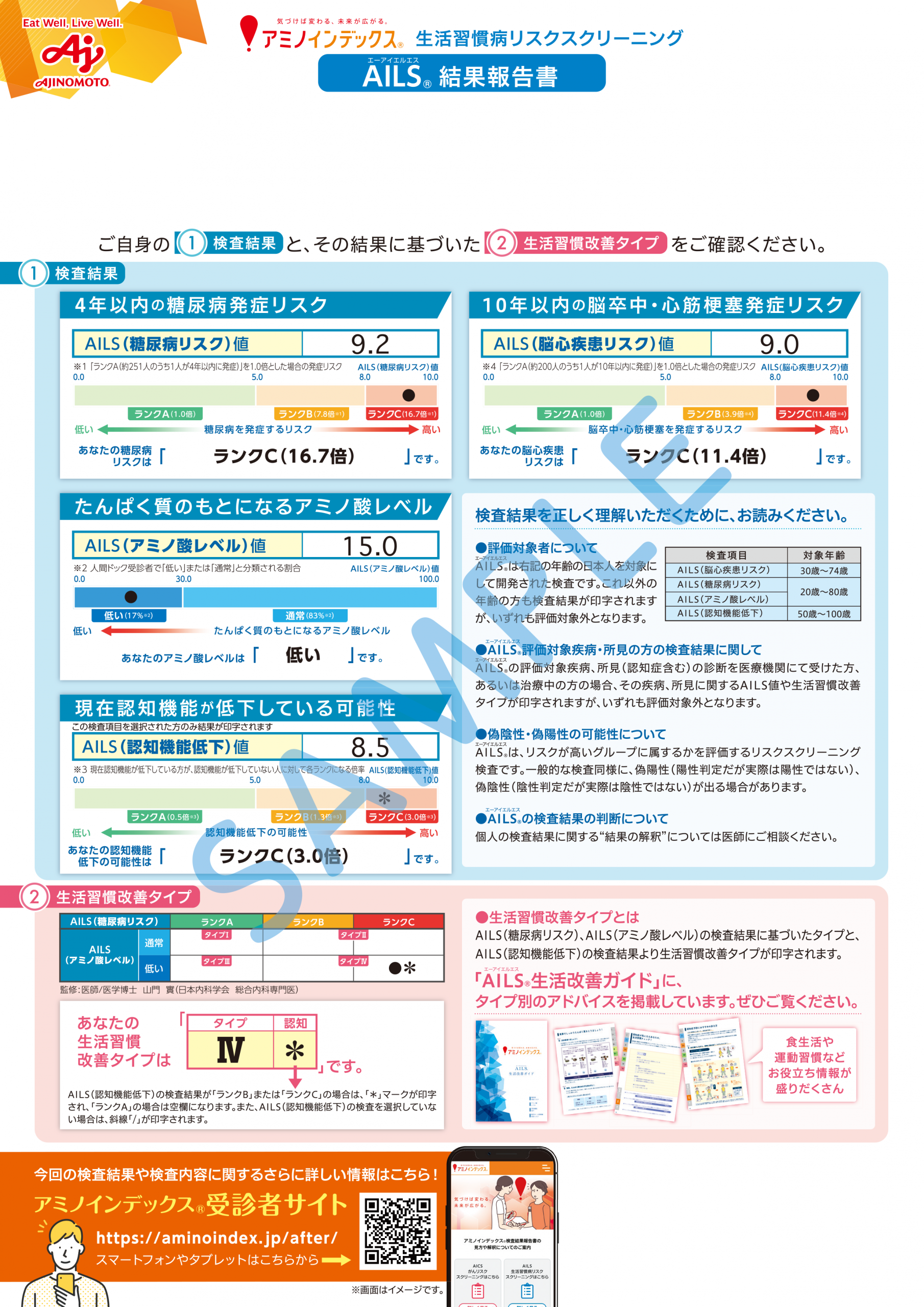 詳細は【アミノインデックス受診者サイト】をご参照ください。